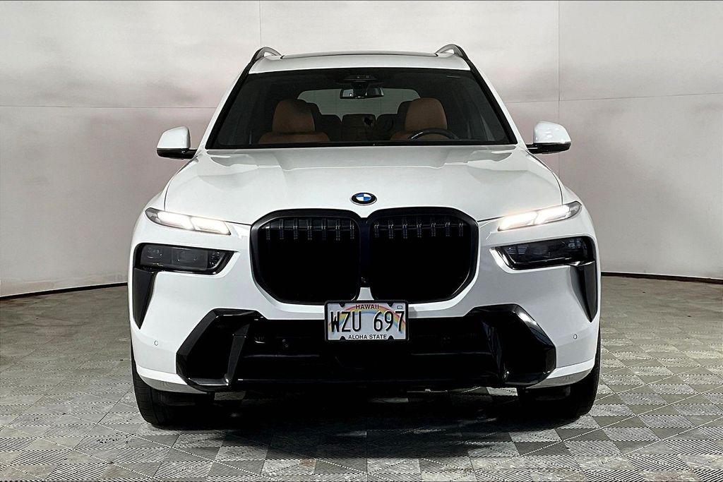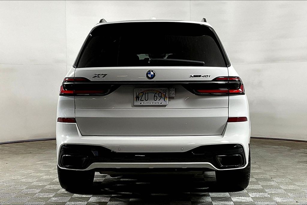 Alpine White 2025 BMW X7 xDrive40i AWD 8-Speed Automatic Sport 3.0L I6 DOHC 24V Active Cruise Control with Stop and Go, Active Driving Assistant Pro, Drive Recorder, Driving Assistance Professional Package, Executive Package, Extended Shadowline Trim, Front Massaging Seats, Gesture Control, Glass Controls, Harman/Kardon Surround Sound System, Heated and Cooled Cup Holders, Highway Assistant, Illuminated Kidney Grille, Lane Keeping Assistant, M Sport Brakes with Black Calipers, M Sport Exhaust System, M Sport Package Pro, M Sport Professional Package, Panoramic Sky Lounge LED Roof, Parking Assistance Package, Parking Assistant Professional, Parking View with 3D View (Surround View), Rear Electric Side Window Shades, Soft-Close Automatic Doors, Traffic Jam Assistant.